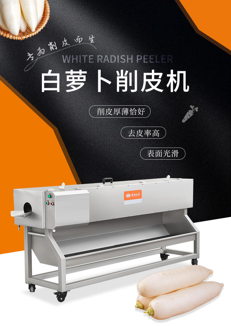 大型果蔬削皮机,针对于白萝卜、红薯、莴笋等长条型果蔬的自动去皮